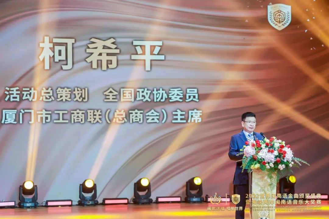 據(jù)廈門日報報道,“咱厝的閩南人形影遍四方,閩南的兄弟攏是好膽量,堅定信念追求心中的理想,不驚艱苦不驚風(fēng)雨對面沖……”開場秀上,全球10強選手共同唱響《愛拼閩南人》。有意思的是,這首歌的詞作者是全國政協(xié)委員、廈門市工商聯(lián)(總商會)主席、廈門恒興集團有限公司董事長柯希平——“2022世界閩南語金曲大獎賽”開啟作品征集后,他踏入音樂領(lǐng)域,上演了一次“跨界”創(chuàng)作。